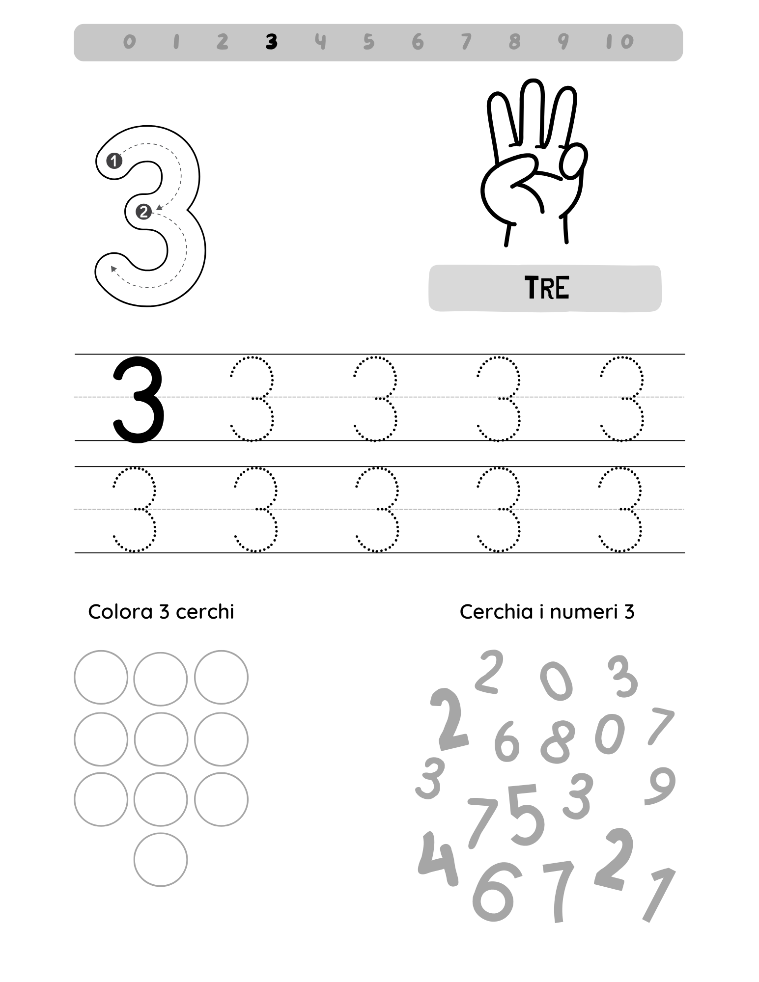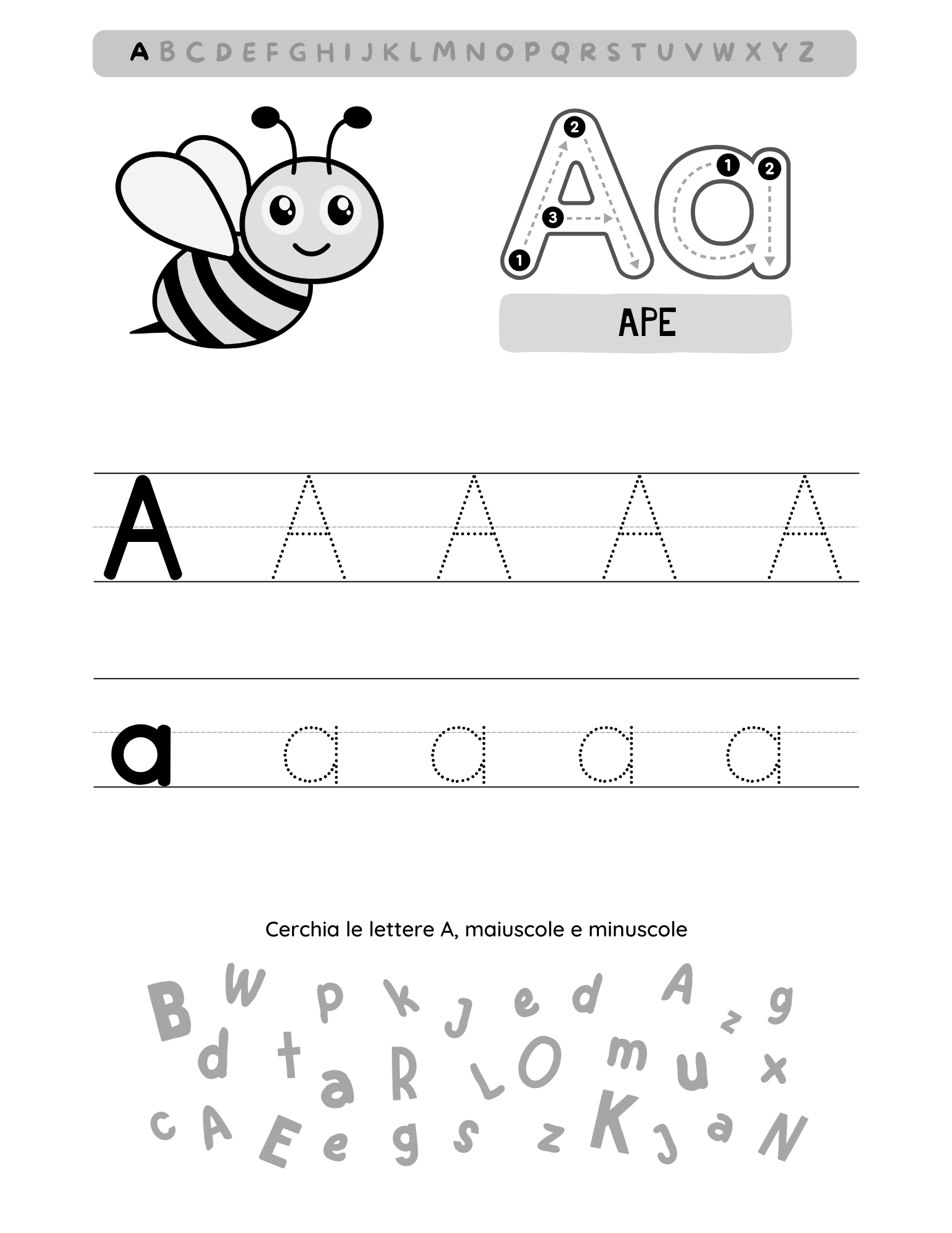 Primi passi tra lettere e numeri per bambini dai 3 anni.