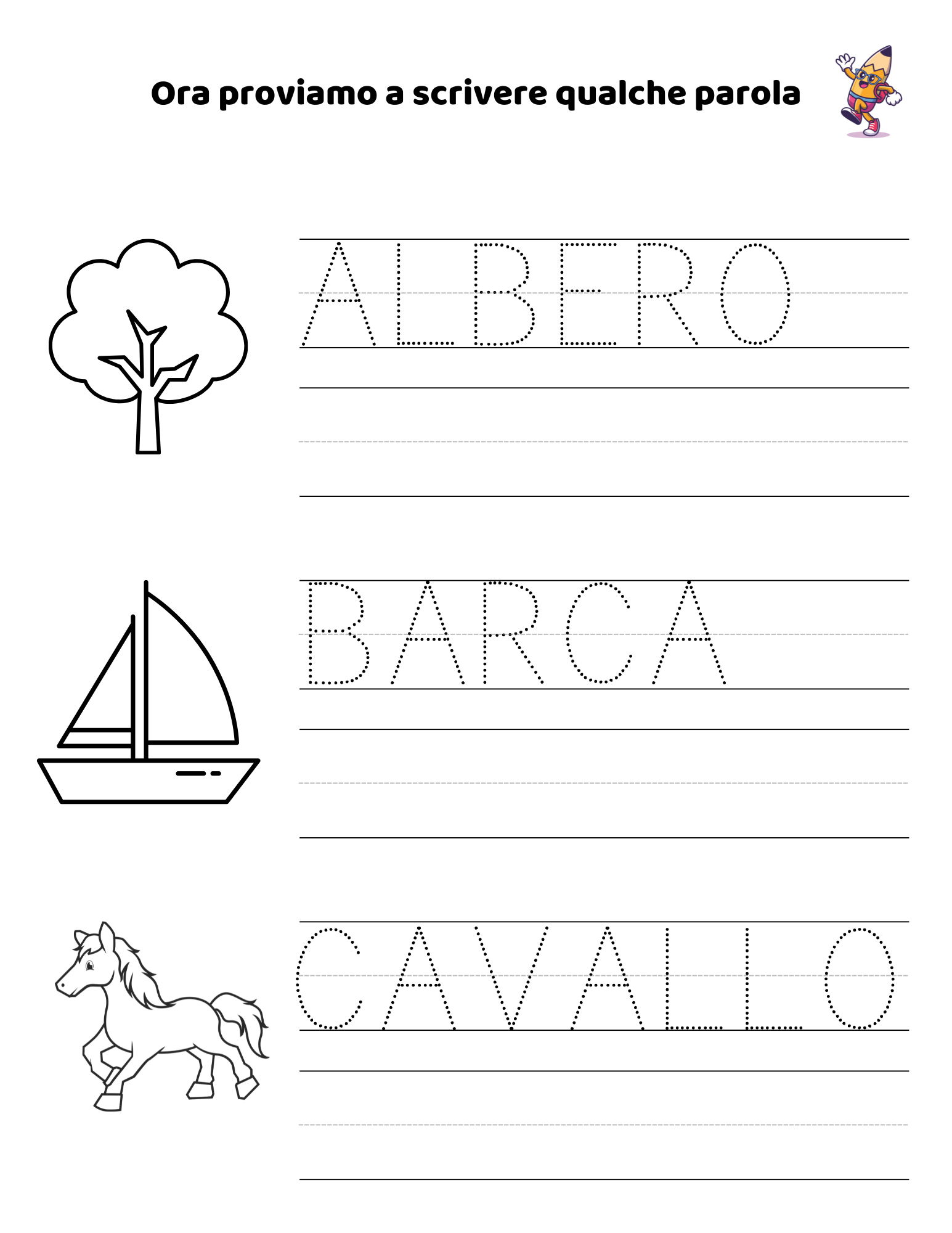 Imparerà progressivamente a tracciare le sue prime linee, fino ad arrivare a scrivere lettere, numeri e piccole parole.